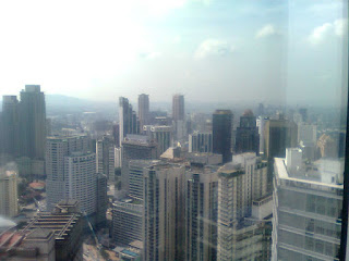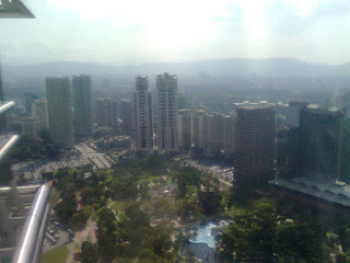 Siaran ulangan : Dengan penuh hina dinanya aka jakun gaban, saya dengan tak malunya mengtangkap gambo view KL di tingkat 43 Petronas Tower. Realy jakun hah!! Saya pedulik apa. Kenapa saya tak post semalam? Sebab..........Saya ngantuk lepas tengok bunga api di  Puncak Jalil!...Hahahahah