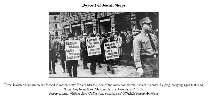 Pada 1934, masyarakat Yahudi mengutuk Jerman dan memulaukan negara itu dan menjelang Perang Dunia Kedua pada 1939, hanya 200 000 Yahudi yang masih menetap di Jerman.